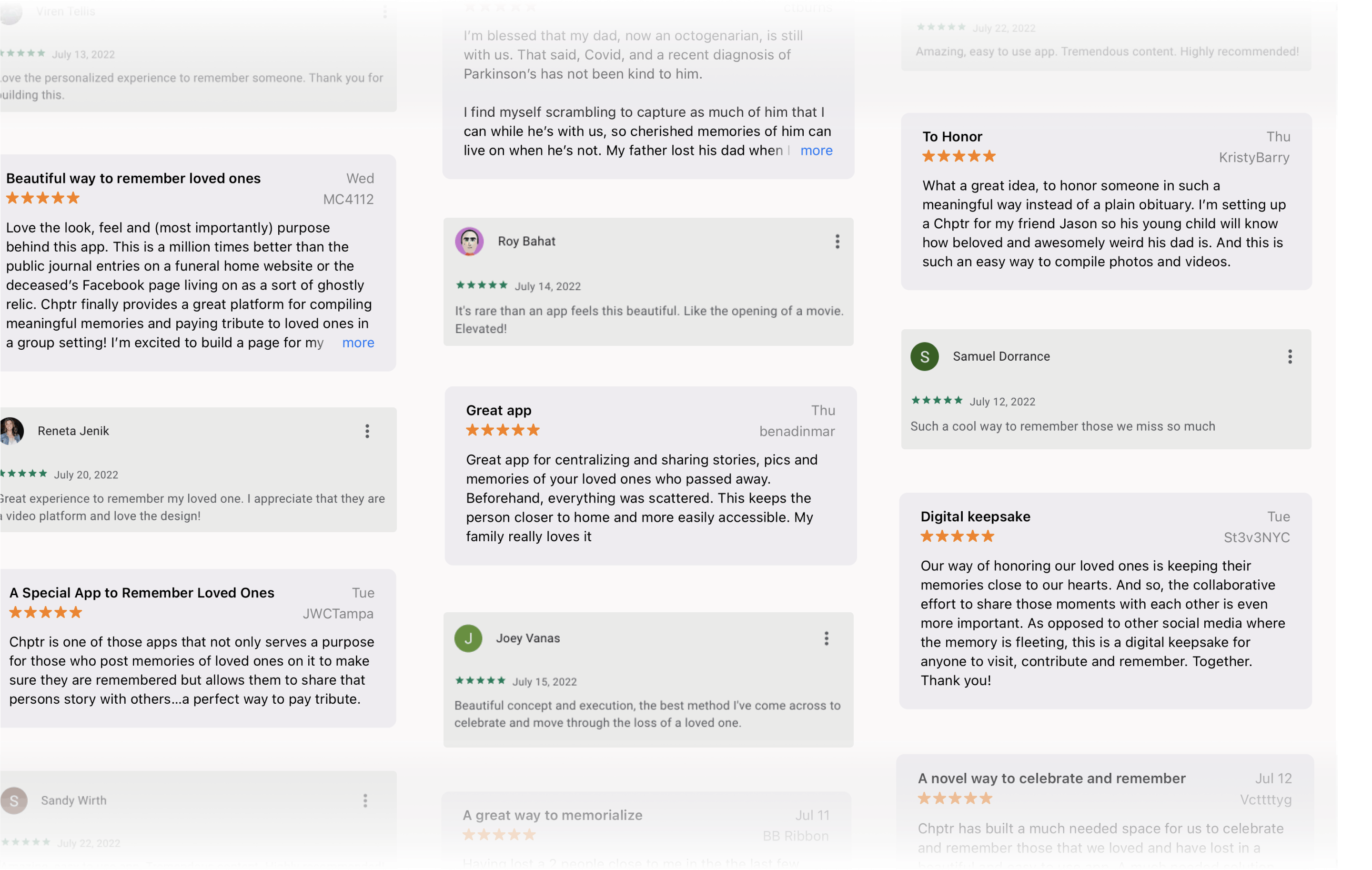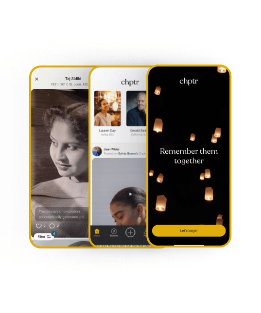 Chptr Founder and CEO, Rehan Choudhry, realized there was something else that we -as human beings- could do to cope and deal with when losing someone we love. He idealized a mobile app that could make it possible to share thoughts and immortalize what we want to remember about our loved ones.